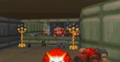 the player (e.g. not the Pinky Demon). This allows the player to gain an advantage by killing the monsters on the other side of the window and thus, when he enters the room (in which the monsters are currently located), he encounters fewer/no monsters. The player is also shown which room is still to come. Depending on the design, anticipation can be generated in the player.