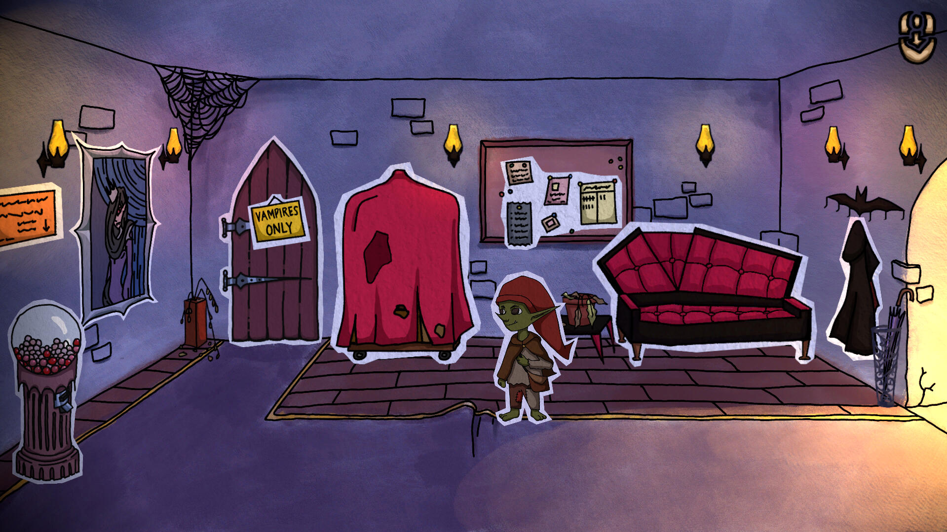 Fang-tastic Heist is a 2D Point-and-Click Adventure game, in which a goblin and his friends have decided to sneak into a vampire castle and steal it's riches. During their heist those friends get captured and now it is your job to use your wits and find a way to rescue your crew.